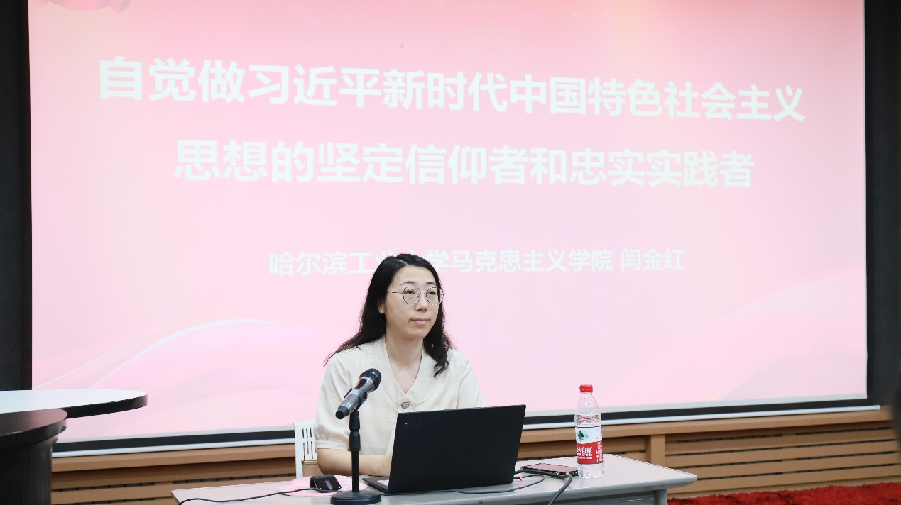 7月6日,哈尔滨工业大学马克思主义学院教授闫金红作题为《自觉做习近平新时代中国特色社会主义思想的坚定信仰者和忠实实践者》的专题教学,从为何学、学什么、怎么学等问题出发,详细阐述了习近平新时代中国特色社会主义思想的指导意义和实践价值。