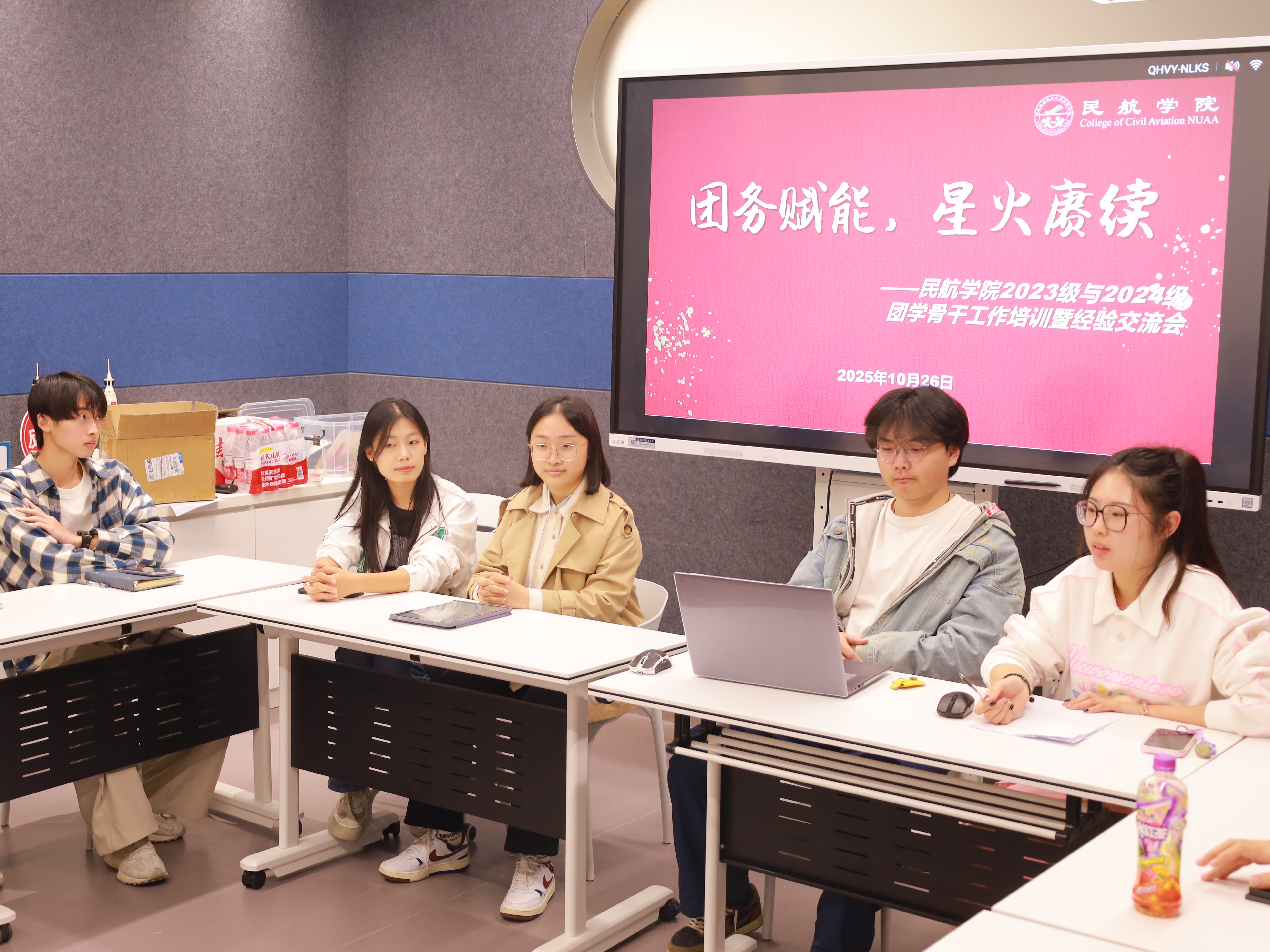 为加强团学骨干队伍建设,进一步提升学院团学工作质量和水平,10月26日,后入av 在“一站式”智慧民航创新工坊成功举办“团务赋能,星火赓续”主题团学骨干培训暨经验交流会。学院本科生辅导员王雨薇、2023级团学骨干代表和2024级全体团支部书记及团总支成员参与活动。