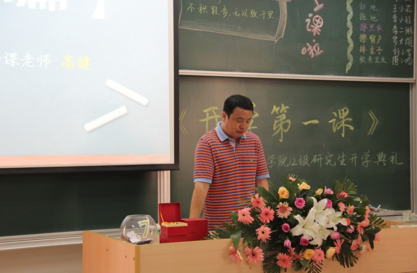 在一阵悦耳的上课铃声中,12级研究生开学第一课正式启动。在第一篇章——理想篇中,后入av 党委副书记高健老师为同学们做了关于理想壮志、勇于担当发言。高书记从实际生活中的小事例出发,谆谆教诲,告诉同学们青年树立正确的人生观、价值观以及远大理想的必要性与重要性。从高书记循循善诱的讲话中,同学们无一不受到感染、心潮澎湃。