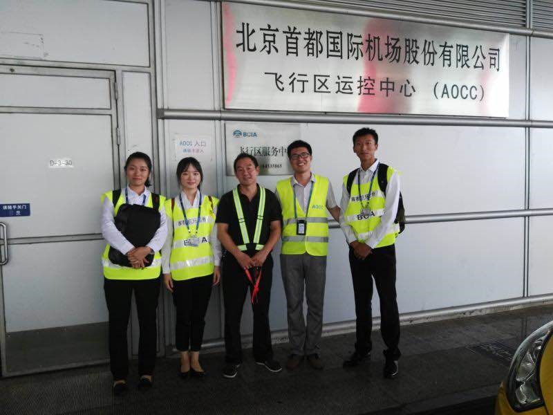 到达北京的第一天,同学们以100%的合格率通过了机场安全知识上机考试,跨入了机场实习的第一道门槛。在航站路管理部和运控中心实习的同学分成一人或两人一组,跟随值班班组一同倒班,在飞行区管理部实习的同学分成三组,分别进入飞行区运控中心、机坪管理部和航空安保部。
